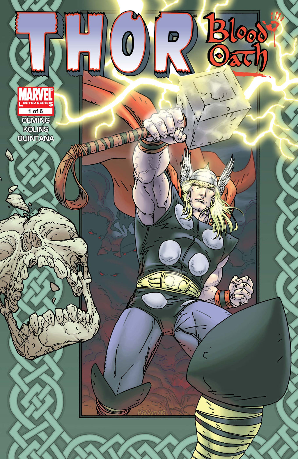 Following the wrap-up on Marvel's legendary Mighty Thor series, Oeming and Kolins travel back in Marvel history to bring you a classic Thor adventure! Stepping out of the past of the glorious days of Kirby, Lee, and Buscema, Thor: Blood Oath presents Thor in his prime, with your favorite cast, including Odin, Balder, The Warriors Three and more!